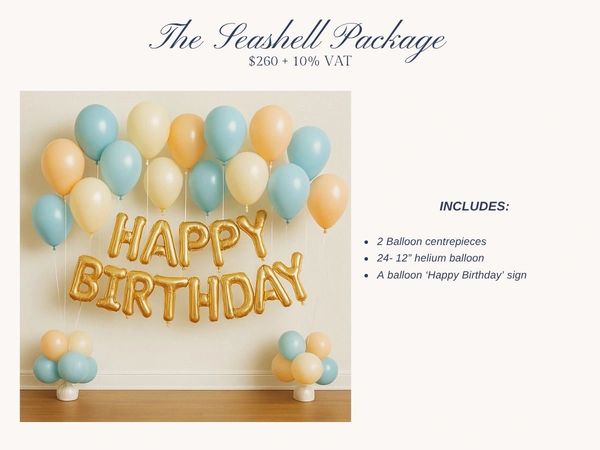 - 8 ft balloon garland with a balloon cluster on the other side (no more than 3 balloon colours)